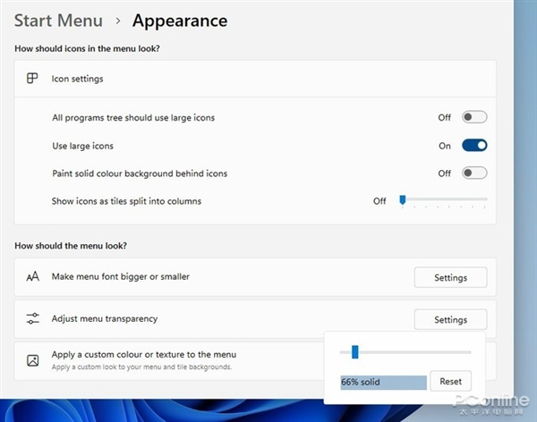 比如增加菜单程序列、决定是否使用小图标、调整字号以适配高分屏、修改底色来满足不同用户的个性化需要。甚至它还允许你去调整菜单的整体透明度,使其更好地融入系统中。