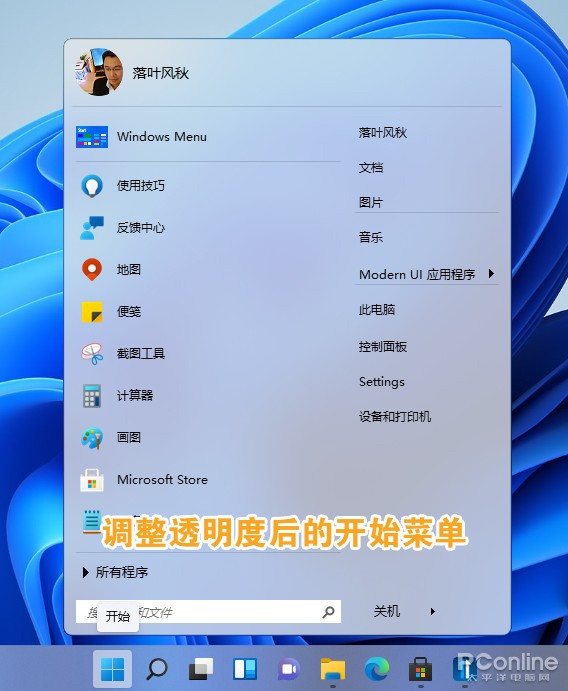 外观方面,StartAllBack融入了最新的Win11特性,比如悬浮式开始菜单、圆角风格、Win11弹出特效、云母外观等,均可以在默认开始菜单中看到。