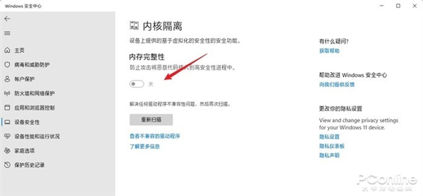 该功能在Win10和Win11的安全中心都能找到,不过在Win10中,它是默认关闭的,而Win11则默认开启了该功能,让部分用户明显感知到性能下降。