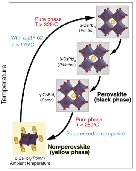 对此,一种解决方案是使用表面配体,使得材料在一定湿度范围的空气中保持稳定,但这也并非长久之计——表面配体容易脱落,导致相转变和材料降解。此外,这种材料在极性溶剂中也不稳定,并且其中的铅容易泄漏、产生环境污染和安全隐患。