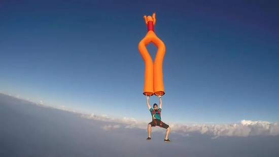就算是在几千米的高空,同样有充气人偶的粉丝让它舞动了起来。