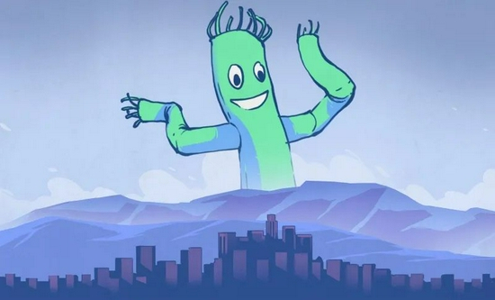 这种没谱的动画总有各种新奇的办法找到观众笑点,充气人偶——或者说古怪的挥舞手臂的充气式摇摆管人,就是作为一段动画世界的广告出现的。