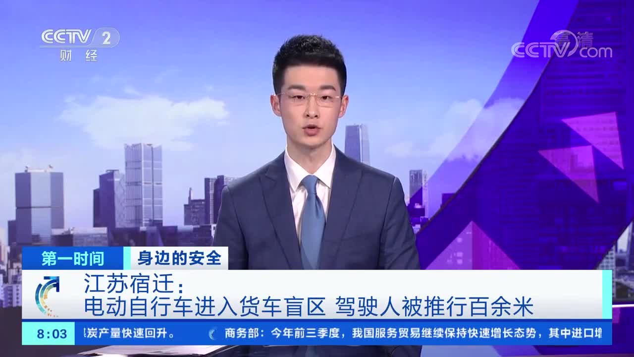 [第一时间]身边的安全 江苏宿迁:电动自行车进入货车盲区 驾驶人被推行百余米