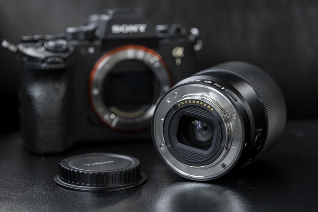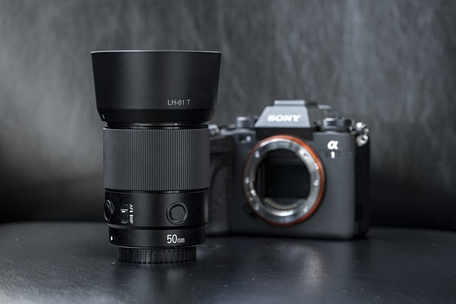 整个YN50mm F1.8S DF DSM镜头的体积非常小巧,拿在手里很轻便,同时挂在索尼全画幅微单相机上也能够衬托出镜头的轻巧设计。