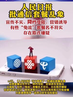 《人民日报》批通信套餐乱象:话费套餐宣传不实、降档受阻、营销诱导等情况