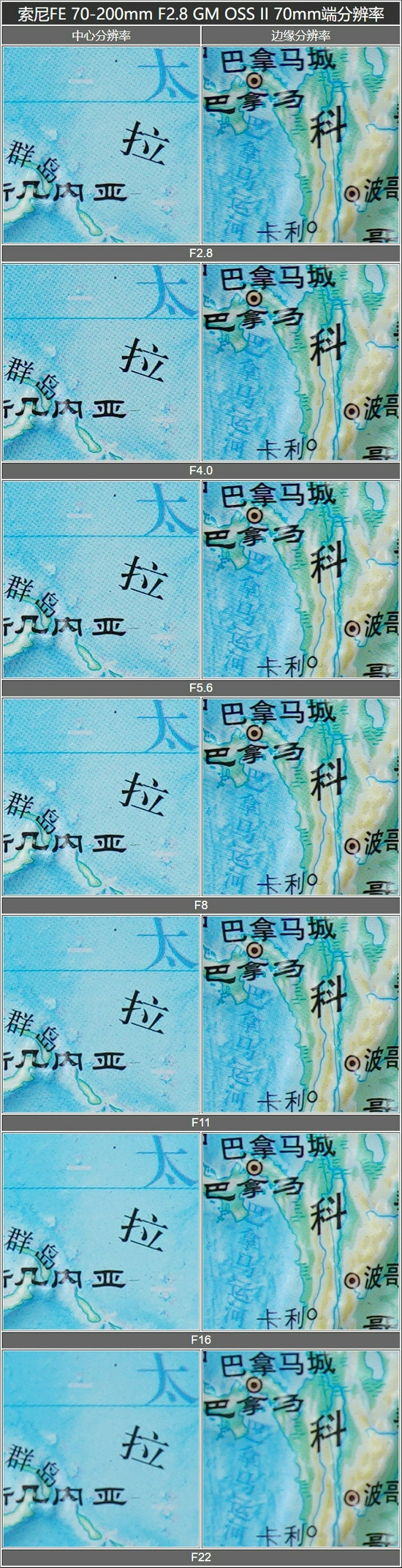 70mm端分辨率测试对比表