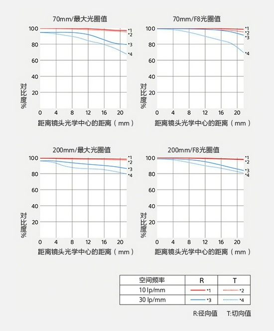 通过对比我们可以看到,这支镜头200mm端中心的各档光圈表现非常平均,收到F4时画质表现最佳。而边缘的分辨率相对于中心就有所下降,但是总体来说都非常让人满意,最佳光圈同样在F4。