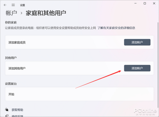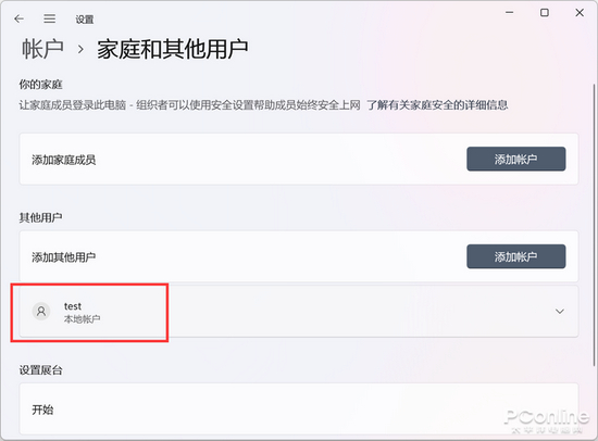 其实这两个功能是放在一起的。在设置面板中,我们进入到账户的相关设置,在家庭和其他用户的页面中,就可以看到本地账户的列表了。