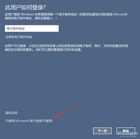在弹出的窗口当中(必须吐槽一下这个窗口还是Win10风格),可以在下方选择不使用微软账户登录,接着按部就班填写用户名和密码等信息,就完成了。