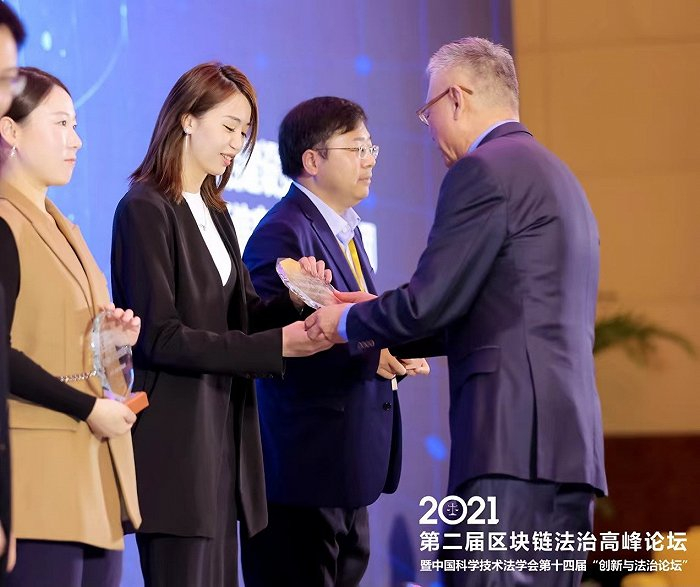 经论坛组委会组织专家组从研究与服务实践、市场及社会影响等角度的综合评价,凭借旗下“链上天眼”系列产品近一年来在区块链法治建设的亮眼成绩,欧科云链在本届论坛上荣获2021年度区块链“法治建设重大贡献”奖。