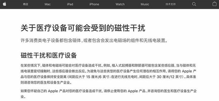紧接着,苹果中国官网就公布了一份产品清单,并表示这些产品应与植入型心脏起搏器、除颤器保持安全距离,因为可能存在潜在的磁干扰。