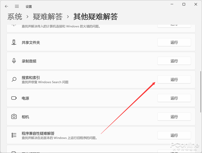 接着,点击进入到“其他疑难解答”的界面,在其中就可以找到“搜索和索引”的选项了。根据描述,这可以查找并修复 Windows Search 的问题。