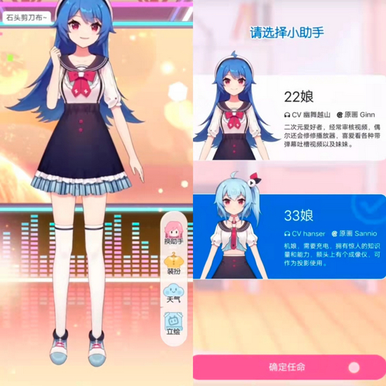 该功能也支持用户切换不同的看板娘,比如22娘和33娘。看板娘会是不是对用户进行礼貌的问候和撒娇,点击人物不同的身体部位会有不同的音效,以及卖萌等动作。如果点击“天气”,看板娘会在获取用户位置信息后,播报当天实时天气。