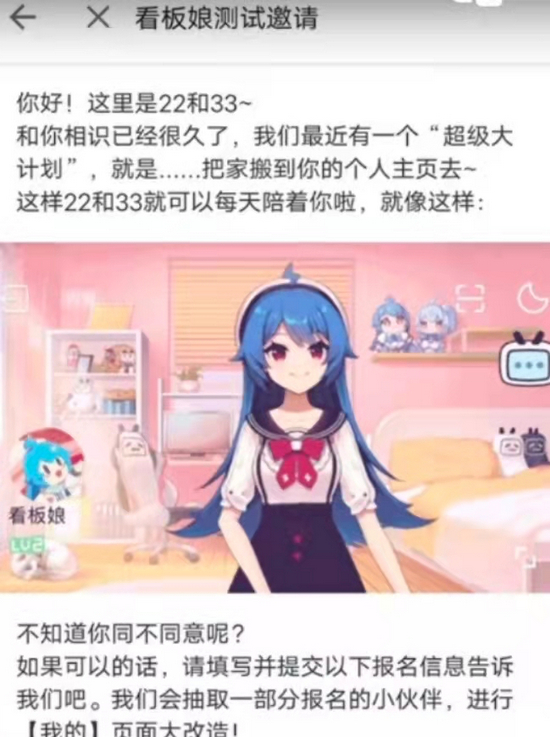 Tech星球独家获悉,有不少网友反映,近期收到了B站有关新功能的邀请,具体的项目测试名为“看板娘测试”。