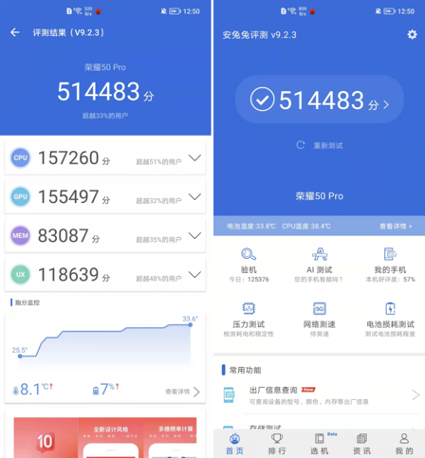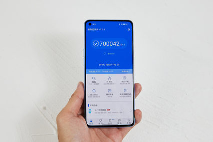 按照惯例,这里先给OPPO Reno7 Pro跑个分,这也是一个相当直观的性能体现方式。从安兔兔跑分的成绩来看,OPPO Reno7 Pro跑出了700042的分数,为了形成对比,我们可以看到市场中备受好评的骁龙778G处理器,其机型跑出了51万的分数。可以说天玑1200-Max的性能表现比起骁龙778G而言,甚至都高出了18多万分,与当前的骁龙870处理器可以说是差不多的水准。当然了,跑分仅是作为一项参考,实际的游戏测试才可知道天玑1200-Max处理器的深浅。