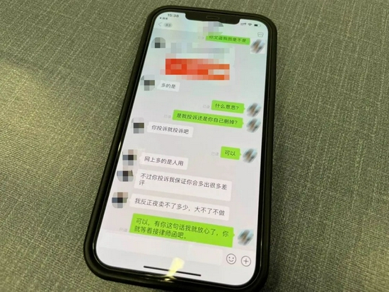 最后,这位盗图者干脆威胁:“你投诉我,保证你会多出很多差评。”