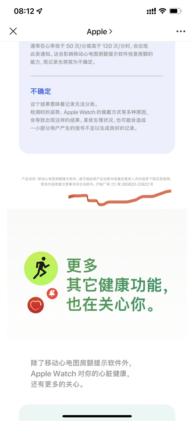 具体到苹果产品上,用户见到的是“健康”里面的移动心电图房颤提示软件和移动脉率房颤提示软件,终于获得国内相关部门批准,在苹果的手表和手机上出现。