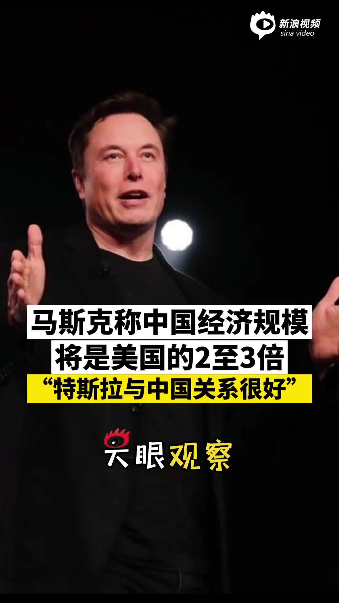 视频 | 马斯克:中国经济规模将是美国的2至3倍,特斯拉与中国关系很好