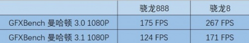 从目前已经曝光的跑分数据来看,在GFXBench测试中,骁龙8移动平台的GPU性能相比上一代骁龙888有了更大进步,在曼哈顿离屏这样的测试场景下,其成绩甚至有接近甚至超过50%的幅度提升。