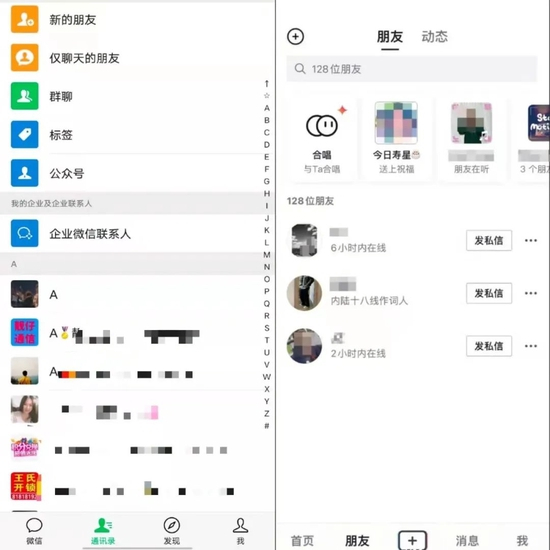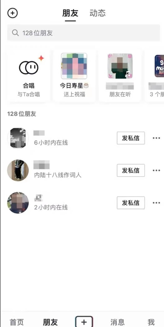 而抖音的“朋友”页,由于测试了类似于通讯列表,与微信的通讯录所对应,但不同的是,抖音在通讯录中加入了动态入口,也就是抖音版朋友圈。