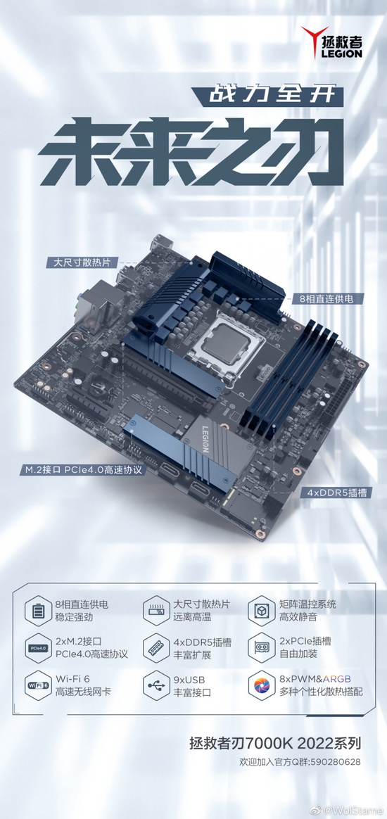 今天,联想中国游戏台式机产品规划经理 @Wolstame 晒出了刃 7000K 2022 台式机的主板,称其采用 8 相供电,持续输出 170W,可跑满 i7-12700。