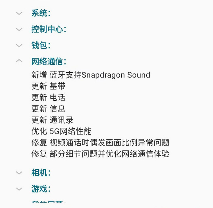 IT之家获悉,本次更新还在通信方面有诸多优化,蓝牙方面新增支持高通 Snapdragon Sound 技术,更新了基带、电话,优化了 5G 网络性能。此外还优化了 NFC 天线的性能,修复细节问题并优化网络通信体验。