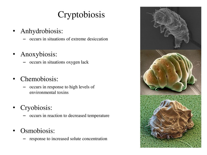缓步动物对于环境的忍耐力几乎和微生物一样强,当你将其置于极端环境时,它通过蜷缩成一个叫做「tun」的球进入休眠状态,这个过程被称为「隐生」(Cryptobiosis)。
