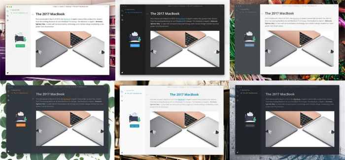 MarkText 提供的 6 种主题分别为 Cadmium Light、Dark、Graphite Light、Material Dark、Ulysses Light 和 One Dark,给了用户更多界面选择。
