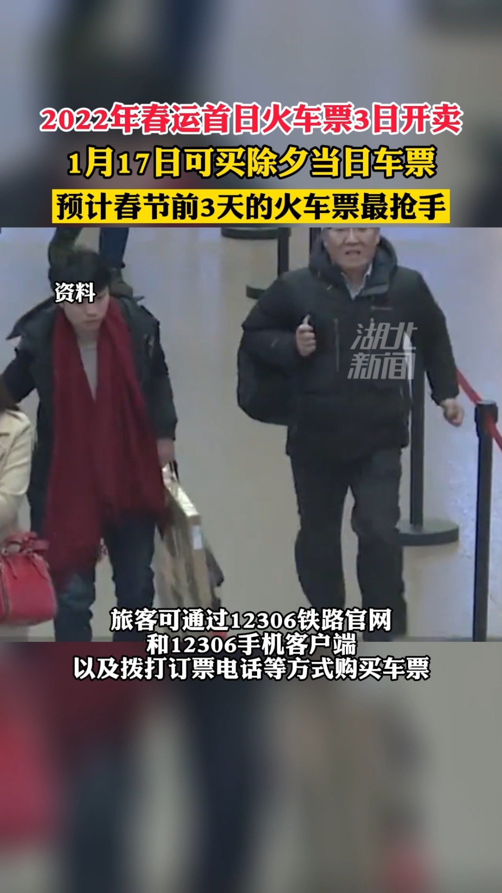 2022年春运首日火车票明天开卖 1月17日可买除夕当日车票