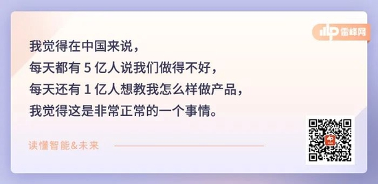 我觉得在中国来说,每天都有5亿人说我们做得不好,每天还有1亿人想教我怎么样做产品,我觉得这是非常正常的一个事情。