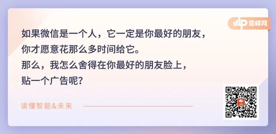 如果微信是一个人,它一定是你最好的朋友,你才愿意花那么多时间给它。那么,我怎么舍得在你最好的朋友脸上,贴一个广告呢?