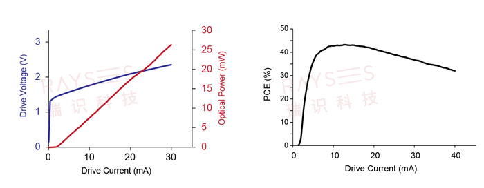 瑞识背发光VCSEL产品LIV曲线与PCE曲线