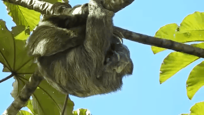 树懒行踪隐秘,分娩的场景很少被人看到。