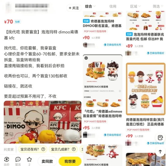 高价转手二手盲盒、找人代吃,最近泡泡玛特与肯德基联名推出的一款套餐,成为新的流量工具。