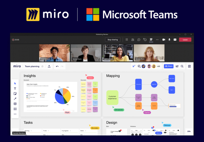 除了功能多而全,协作实时,Miro 的使用灵活度还非常高。它与 Atlassian、Cisco、Google Workspace、Microsoft Teams、Zoom 等其他办公软件深化合作伙伴关系,使用户能够将 Miro 的可视化协作层添加到他们现有的工作流、工具和流程中。