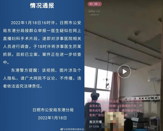 值得一提的是,目前,该直播事件已被日照市公安局东港分局立案。后者在通报中称,已于1月18日18时许将涉事医生厉某抓获。案件正在进一步侦查中。