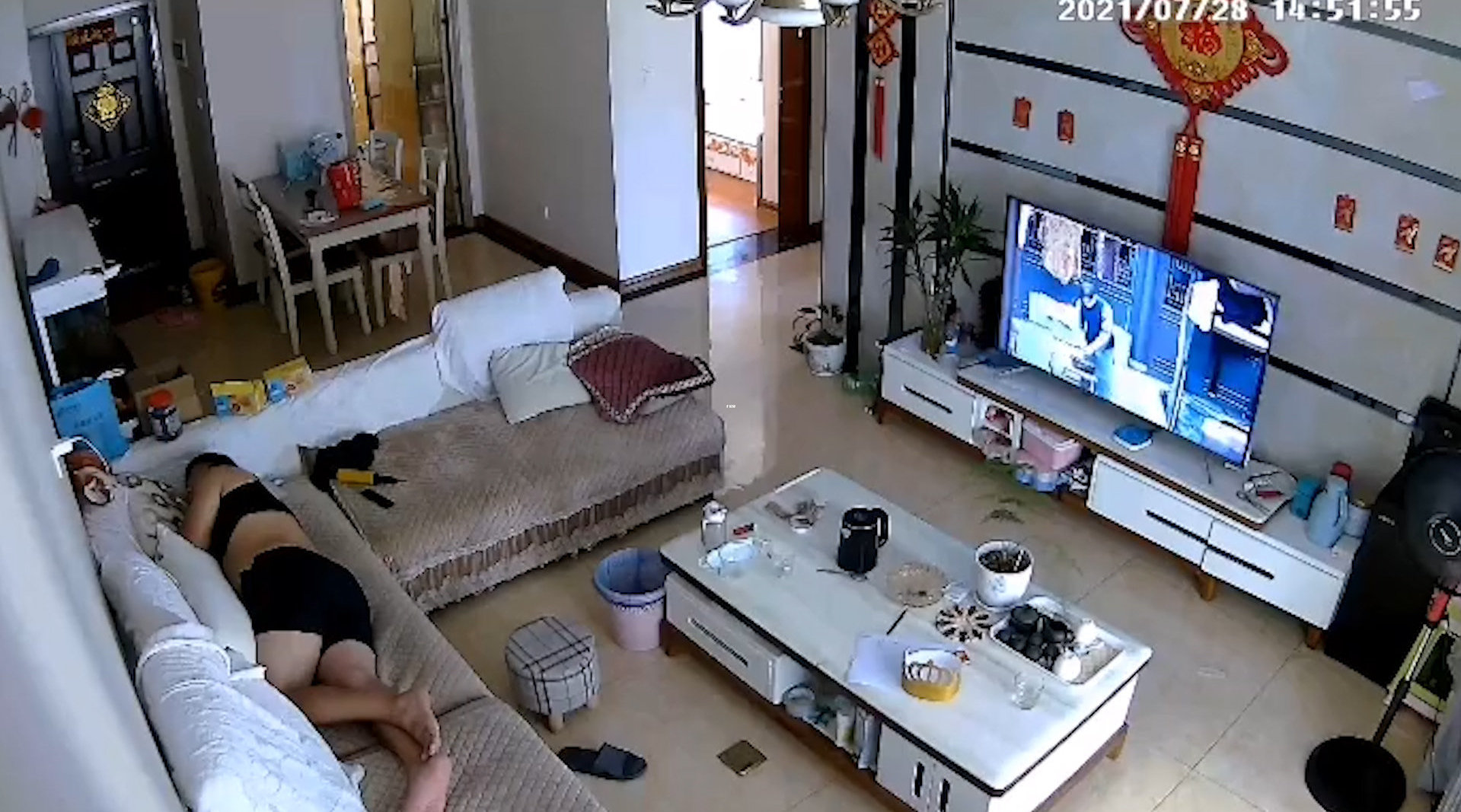 男子在沙发上睡觉被电视剧叫醒,一喊一答无缝衔接