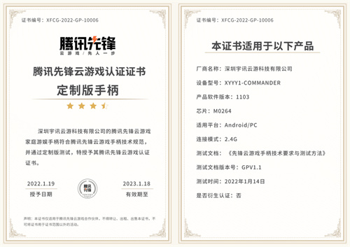一、宇讯科技-腾讯先锋云游戏家庭游娱手柄(3.5星认证)