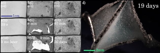 因此,他们在水中加入了甘油。研究作者称,甘油有高浓度的羟基,而羟基又与水分子有很强的亲和力,可以形成很强的氢键。所以,甘油能从空气中吸收更多的水分,从而补偿气泡水分的蒸发。水/甘油气体弹珠的持续时间明显更长,达到5周至465天,这使研究人员能够调整水和甘油的最佳比例,最终获得制造长寿命气体弹珠的完美配方。