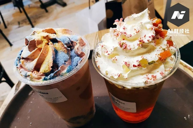 在制作上,新茶饮不同于调制茶饮,茶叶要现萃、奶盖要鲜奶,更重要的是颜值一定要能打。本地奶茶品牌习得其中奥义,用蓝、紫、粉相间的奶油搭配细粉末,就是“丹霞地貌”,做个金色顶的奶盖,就是“鸣沙山”。一口甜香之外,奶茶也成了文创产品,越来越多消费者开始承担起另外的品牌溢价。