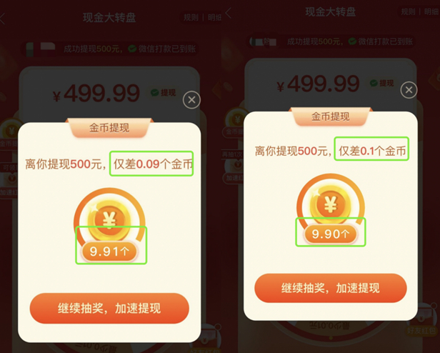 然而拼多多套路还在持续演变、升级。在砍一刀之后,现金大转盘、天天领现金等活动也以换汤不换药的形式登场,只不过换成了数百元的现金诱惑。