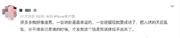 “套路太深了,拼多多画的饼和印度人做的饼一样,会飞。”上述用户感叹到,整个操作过程令人绝望,又充满诱惑和无奈。