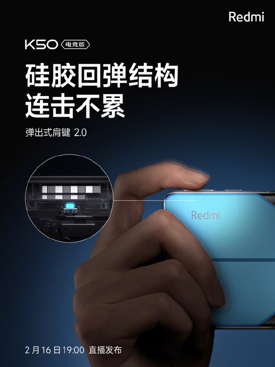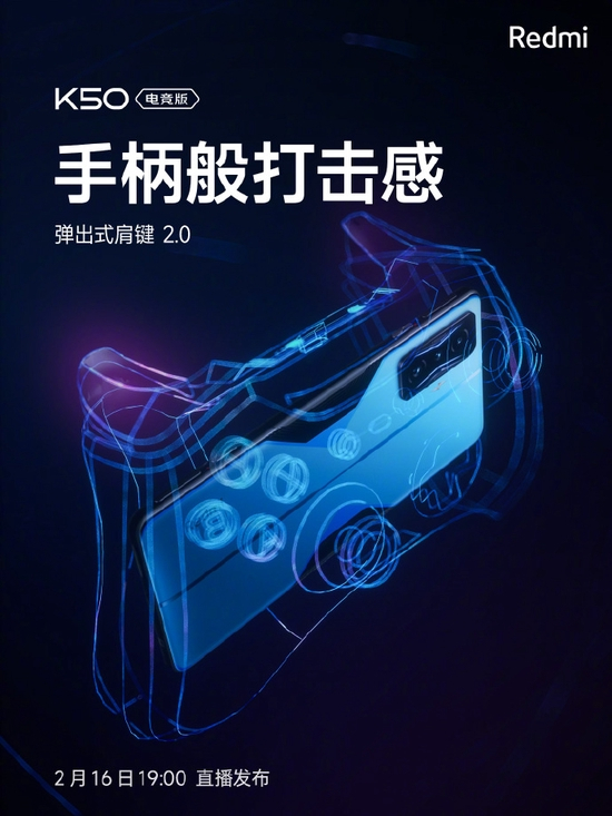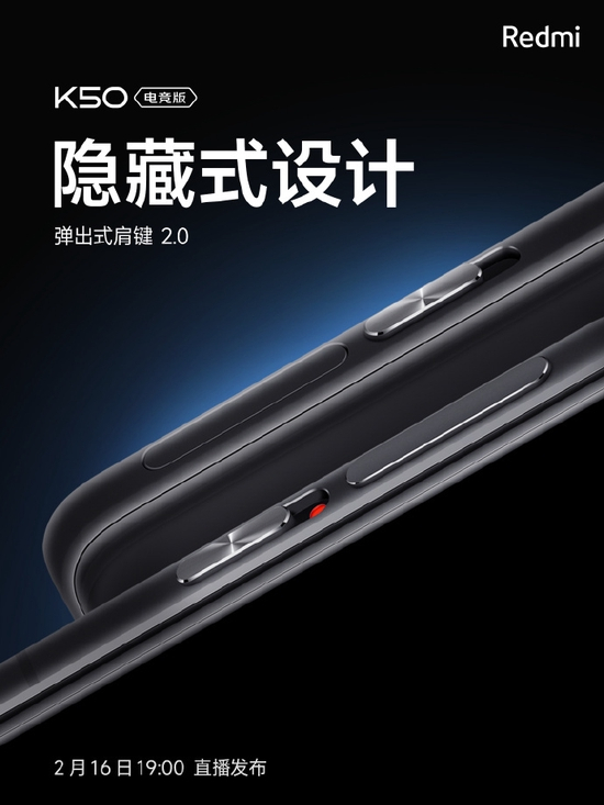 Redmi K50电竞版外观设计细节揭晓:金属中框+弹出式肩键2.0