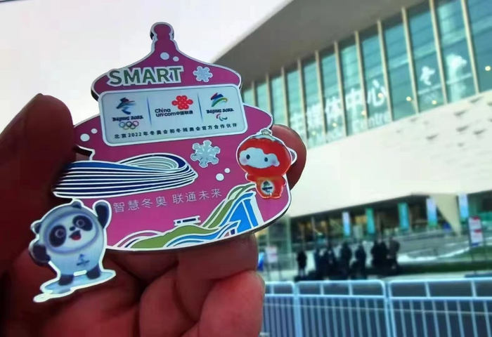 和羽生结弦同框的冰墩墩天坛PIN,出自双奥联通人、北京联通市场部员工刘岩之手,“08年时我特别喜欢收集奥运徽章。今年公司也举办了冬奥文创大赛,我设计的一枚《SMART智慧冬奥》天坛造型徽章,将中国联通智慧冬奥目标、北京建筑、比赛场馆、冬奥吉祥物、冰雪等元素融入作品,在比赛中获第一名被投产发行,赛时在主媒体中心,冬奥村等多地走红成为稀缺品。”