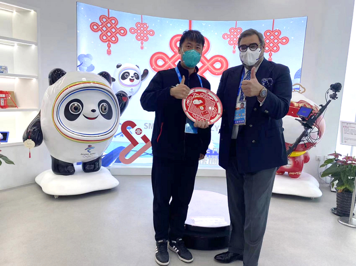 杨玉良顺利和巴赫先生交流合影,离不开奥林匹克广播服务公司首席执行官伊阿尼斯·埃克萨科斯先生的引荐——在此之前,伊阿尼斯·埃克萨科斯先生已经多次来到中国联通展示中心,对中国联通为北京冬奥会、转播商、新闻媒体提供的优质通信服务高度认可。他对巴赫先生介绍杨玉良说:“He is my Chinese friend”。当然,他也在中国联通展示中心合影留念了。