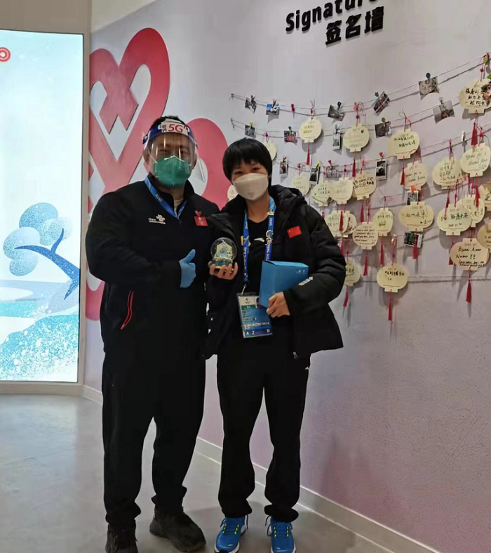 2月9日,另一位联通展示团队成员杨玉良,则是幸运地与国际奥委会主席巴赫先生并肩合影,而且得到了他的亲笔签名,还交换了奥运徽章。“Thank you!Welcome to Beijing!”杨玉良用简单的一句话,表达了一个中国联通人的满满热情。