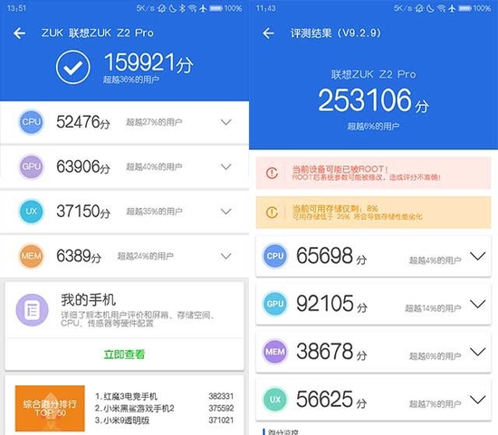 同一软件的不同版本算法也不同。以安兔兔为例,笔者的手机安兔兔V7版本的总分为15万分,到了安兔兔V9版本,总分飙升到了25万分,一口气猛增了近10万分,仔细看各个评测项目,GPU增加了近3万分,UX增加了近5万分等,这些增加的分数主要是安兔兔更新了算法导致的。