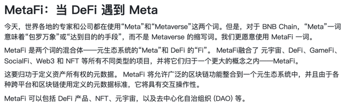 提出Metafi概念,拟合并币安链和币安智能链