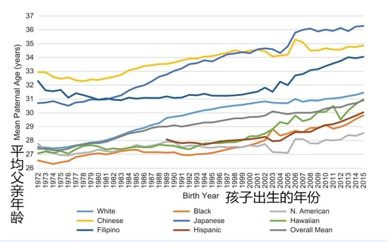 然而,男性的年龄问题并没有受到同样的重视。文学作品中常有“老来得子”的情节。老年男性娶妻生子,似乎也并不少见。现代男性更是普遍晚婚晚育。不管什么族群,学历是高是低,家乡在南还是在北,趋势都是一致的——男人们把生育往后推了又推。