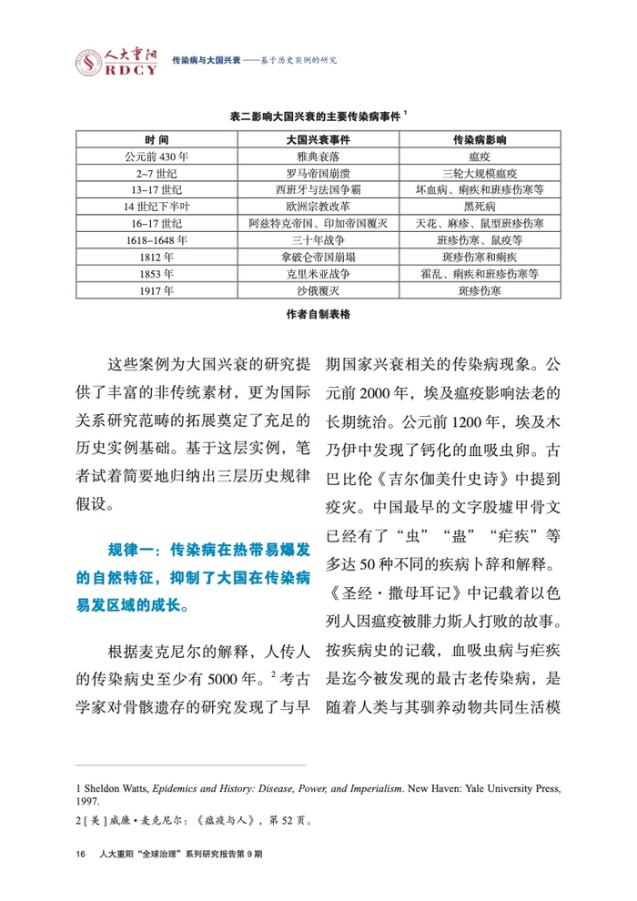 传染病与大国兴衰:基于历史实例的研究